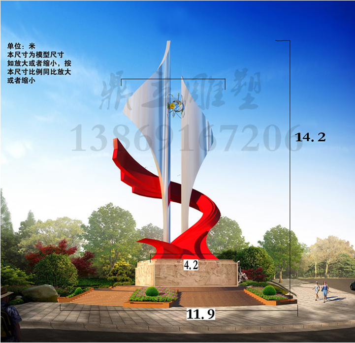 4、鄭州不銹鋼雕塑噴涂時一般采用噴一遍底漆,一遍中漆和一遍面漆的方法。噴第一遍硝基清漆時,因底漆和膩子是油性的,容易被稀釋劑融化而產(chǎn)生氣泡、皺皮,所以噴涂速度要稍快,噴完一遍后,待其干燥經(jīng)水砂紙打磨后再噴后一遍。底漆漆膜厚度不少于75μm,中涂漆漆膜不少于100μm,面漆厚度不少于50μm,油漆完成后,總干漆厚度不少于225μm。